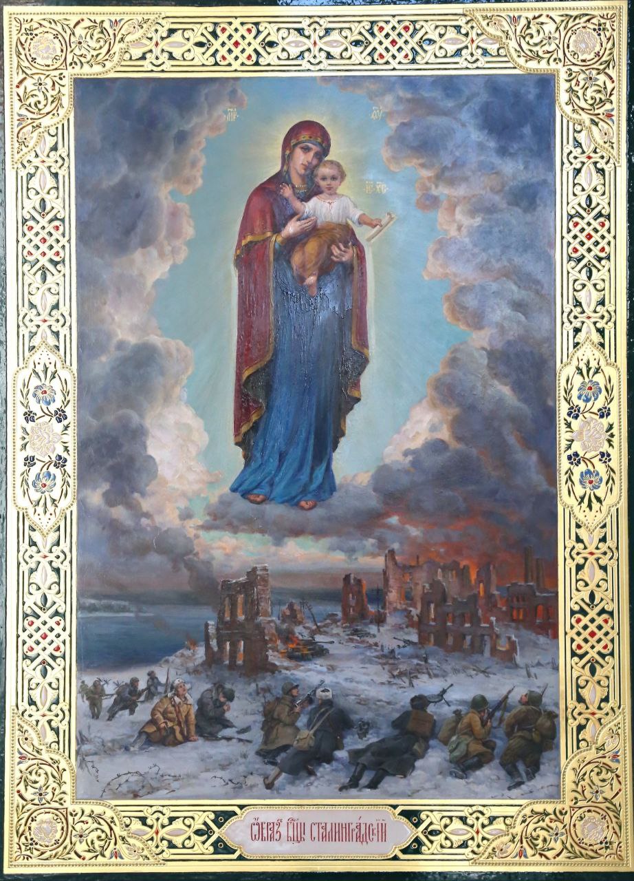 Рассказы местных жителей, переживших войну, полны историями об их молитвах в Сталинграде в период боев, во время бомбежек, об обхождении ими своих жилых домов с иконами в руках в промежутках между налетами немецких самолетов.